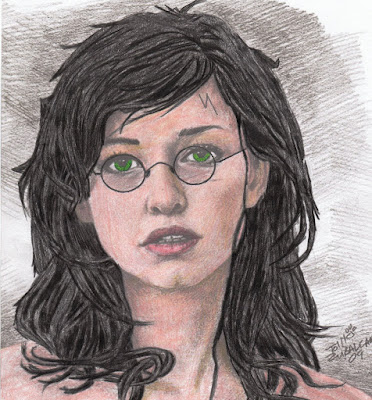 As he slowly approached, her head swiveled in his direction and he suddenly felt a small urge to duck behind the nearest bed, above which floated the corpse of a blackened smoky ghost that was sporting pigtails and thick horn-rimmed glasses. If Harry's piercing green gaze hadn't been boring holes into his head, he would have surely stopped to gawk.